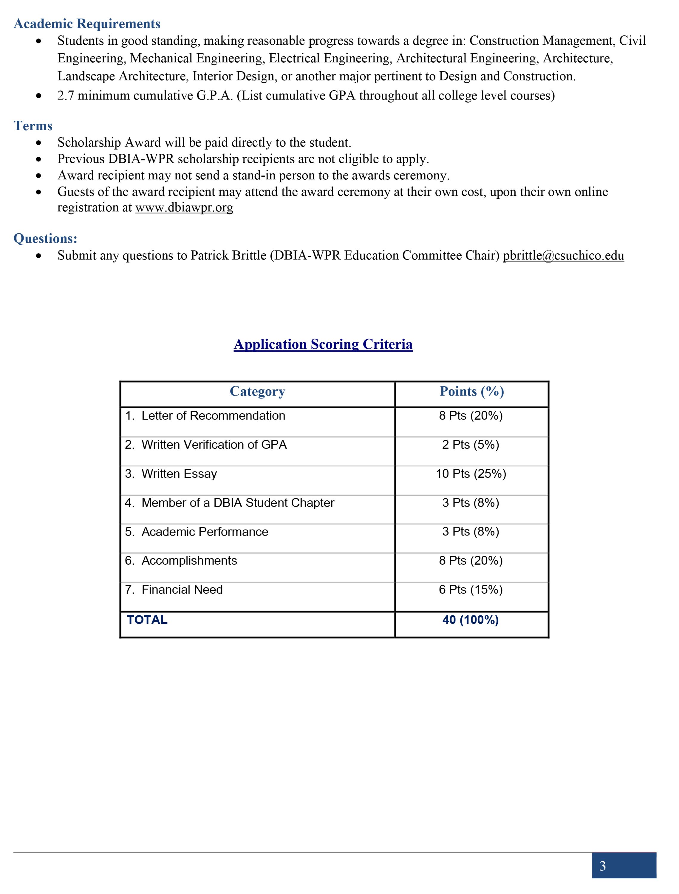 DBIA-WPR STUDENT 2026 SCHOLARSHIP PROGRAM
