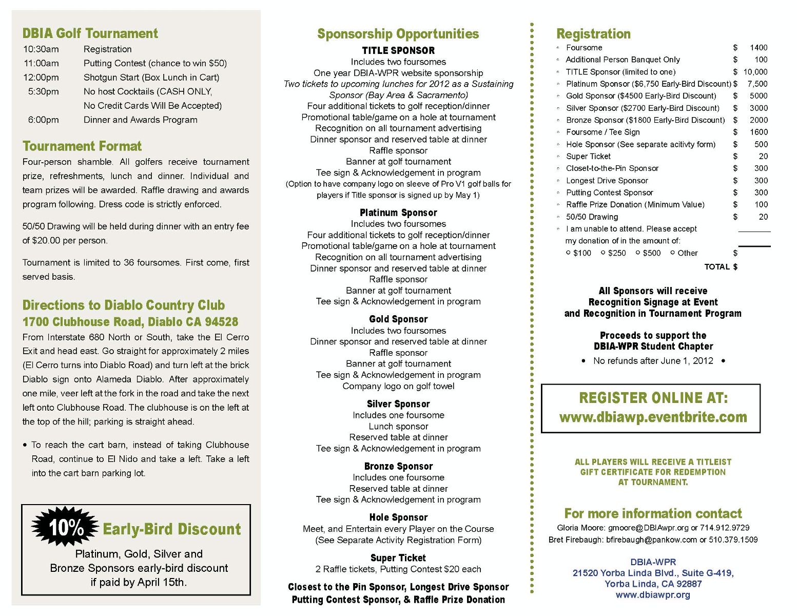 Description: Four person shamble. All golfers receive tournament prize, refreshments, lunch and dinner. Individual and team prizes will be awarded. Join WPR for a day of golf! Sponsorship opportunities are available.
