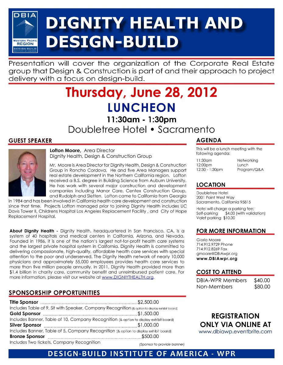 Description: "Dignity Health and Design-Build" with Lofton Moore, Dignity Health, Design and Construction Group.