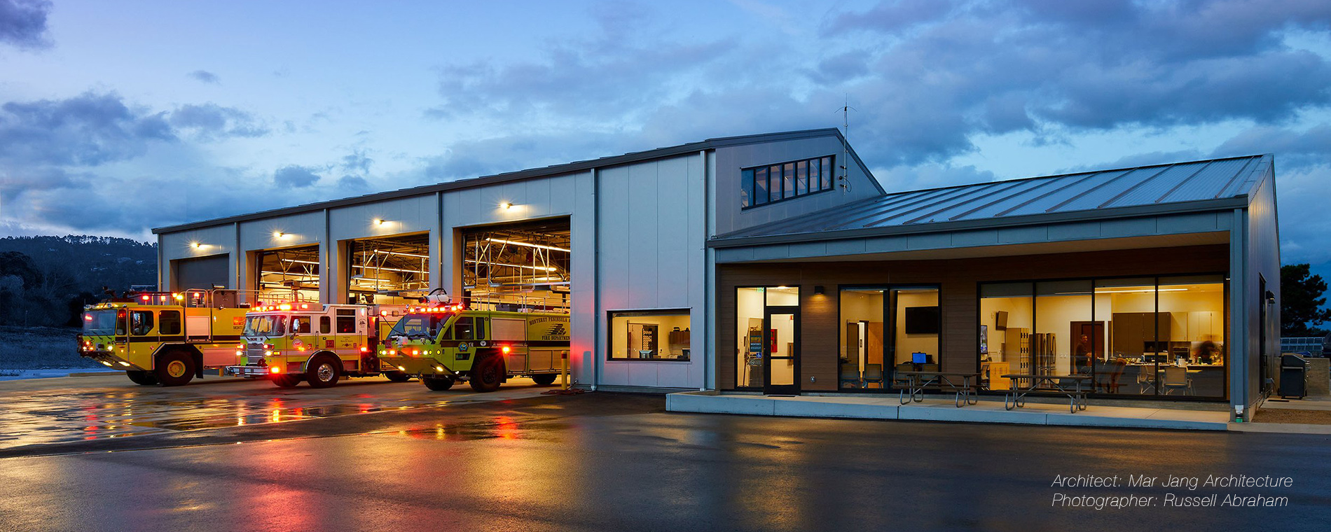 ZFA Structural Engineers: Monterey Regional Airport Aircraft Rescue & Fire Fighting Facility - New four-bay, 10,000 SF Aircraft Rescue & Fire Fighting Facility at Monterey Regional Airport. Includes living quarters, a kitchen/dining/day room, and a watch room. Designed for LEED Silver cert.