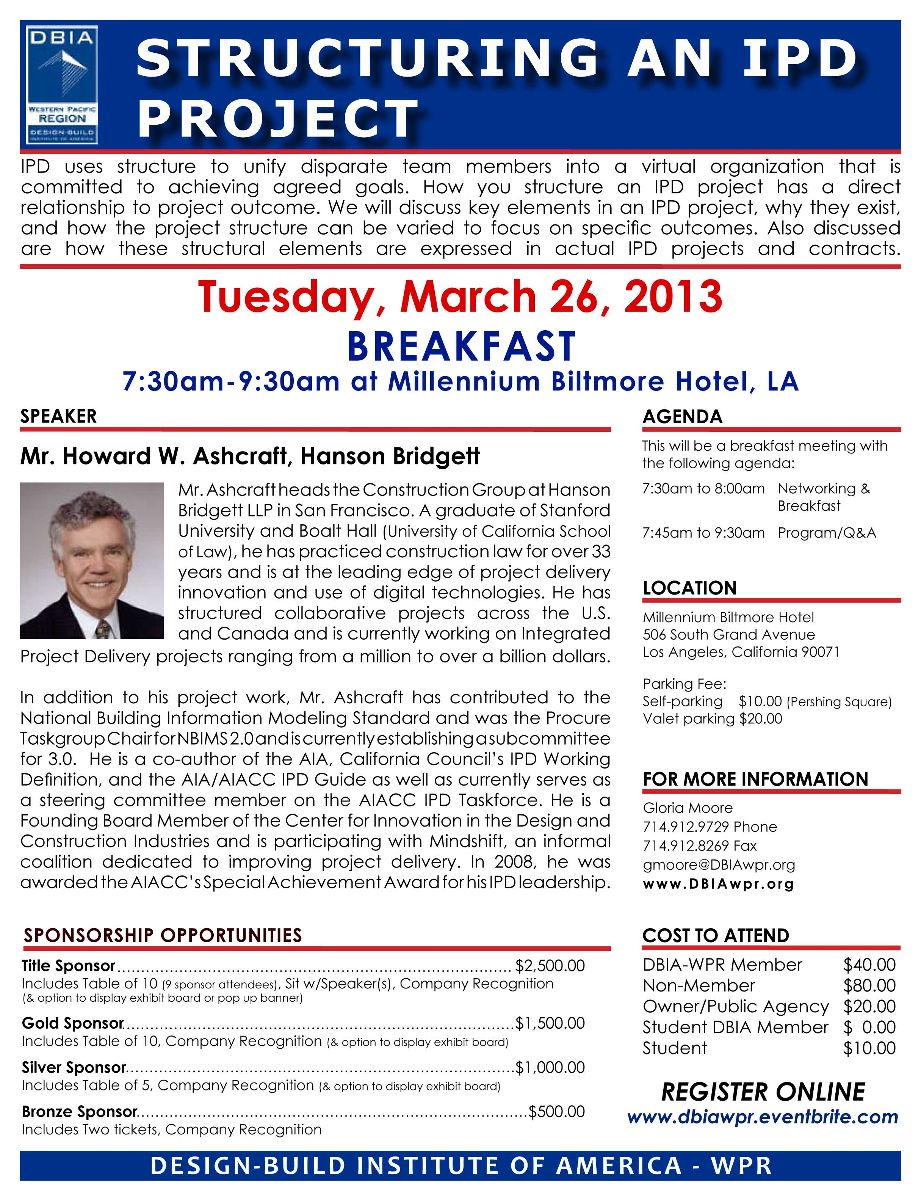 Description: "STRUCTURING AN IPD PROJECT" presented by Mr. Howard W. Ashcraft of Hanson Bridgett.