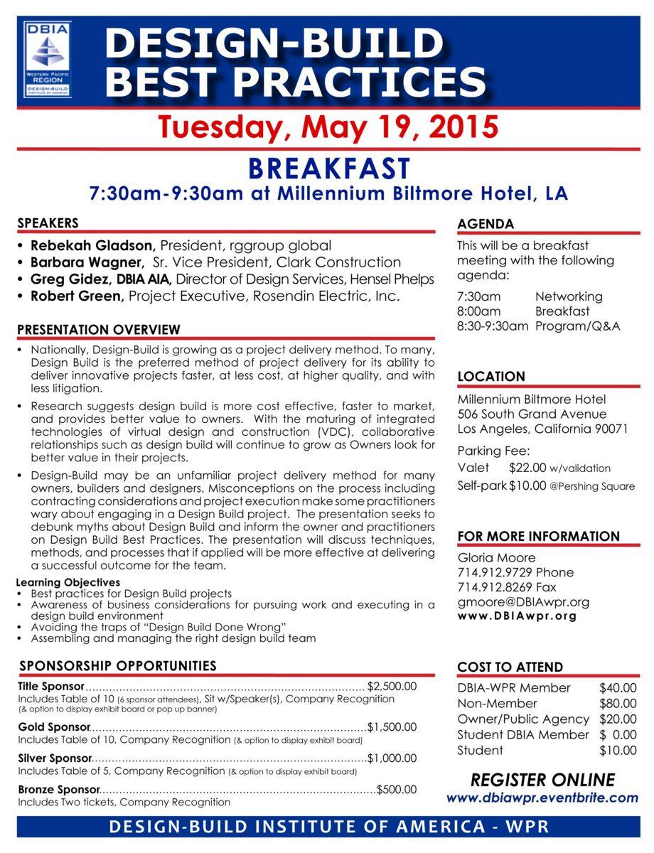Description: LA Breakfast presentation, "DESIGN-BUILD BEST PRACTICES" with the following speakers: