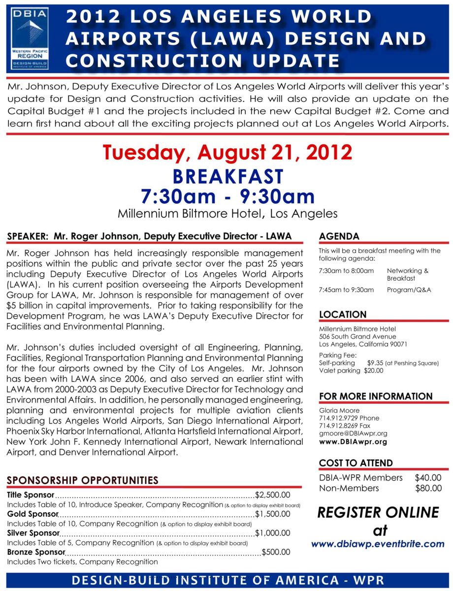 Description: "2012 LAWA Design and Construction Update" with Mr. Roger Johnson, Los Angeles World Airports
