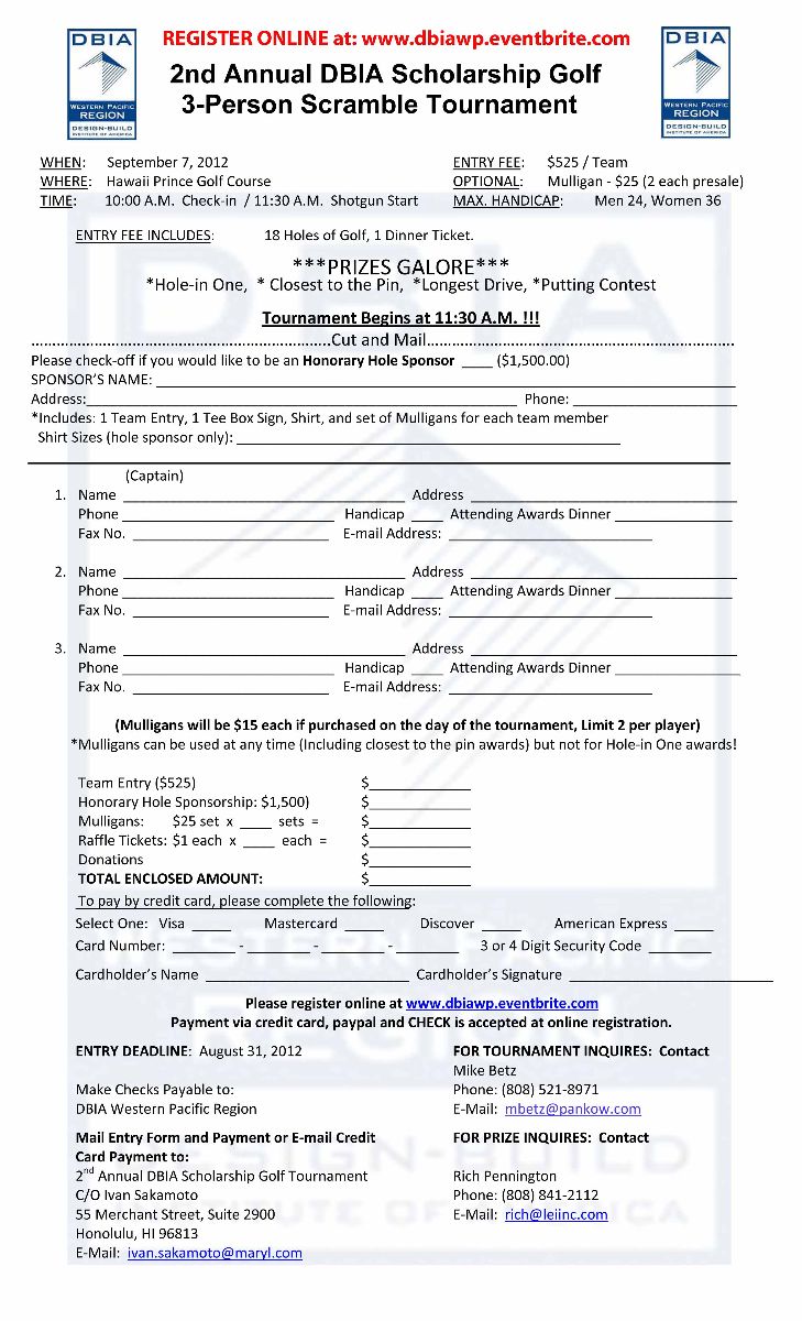 Description: Hawaii 2nd Annual DBIA Scholarship Golf Tournament. This tournament will be a 3-person scramble with a shotgun start. Don't miss out. Join us on Friday, September 7th in Hawaii for some great golf!