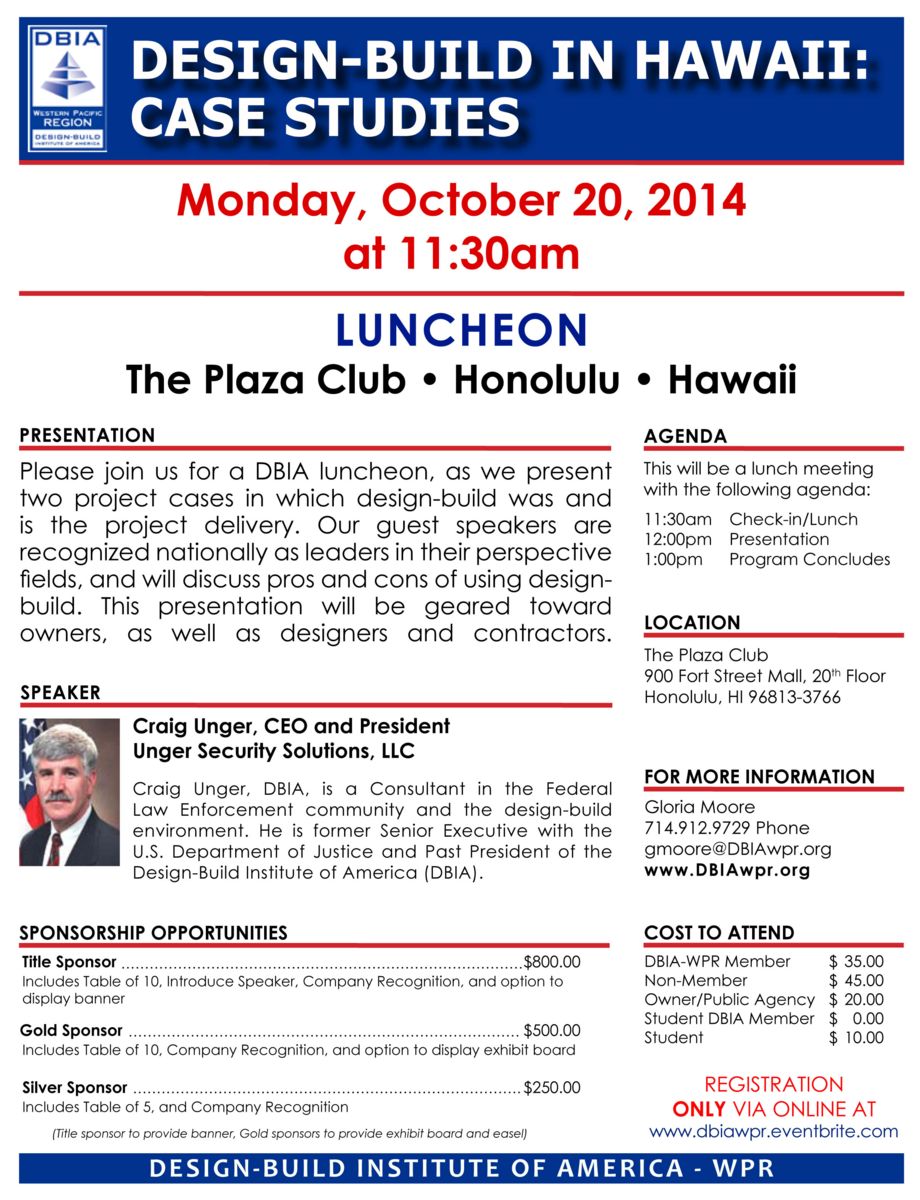 Description: Hawaii Chapter Luncheon Program presentation, "DESIGN-BUILD IN HAWAII: CASE STUDIES" with Craig Unger of Unger Security Solutions, LLC.