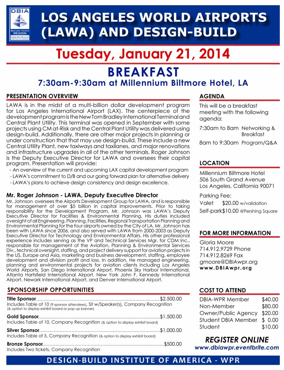 Description: LA/OC Breakfast Program, "LOS ANGELES WORLD AIRPORTS (LAWA) AND DESIGN-BUILD" with Roger Johnson.