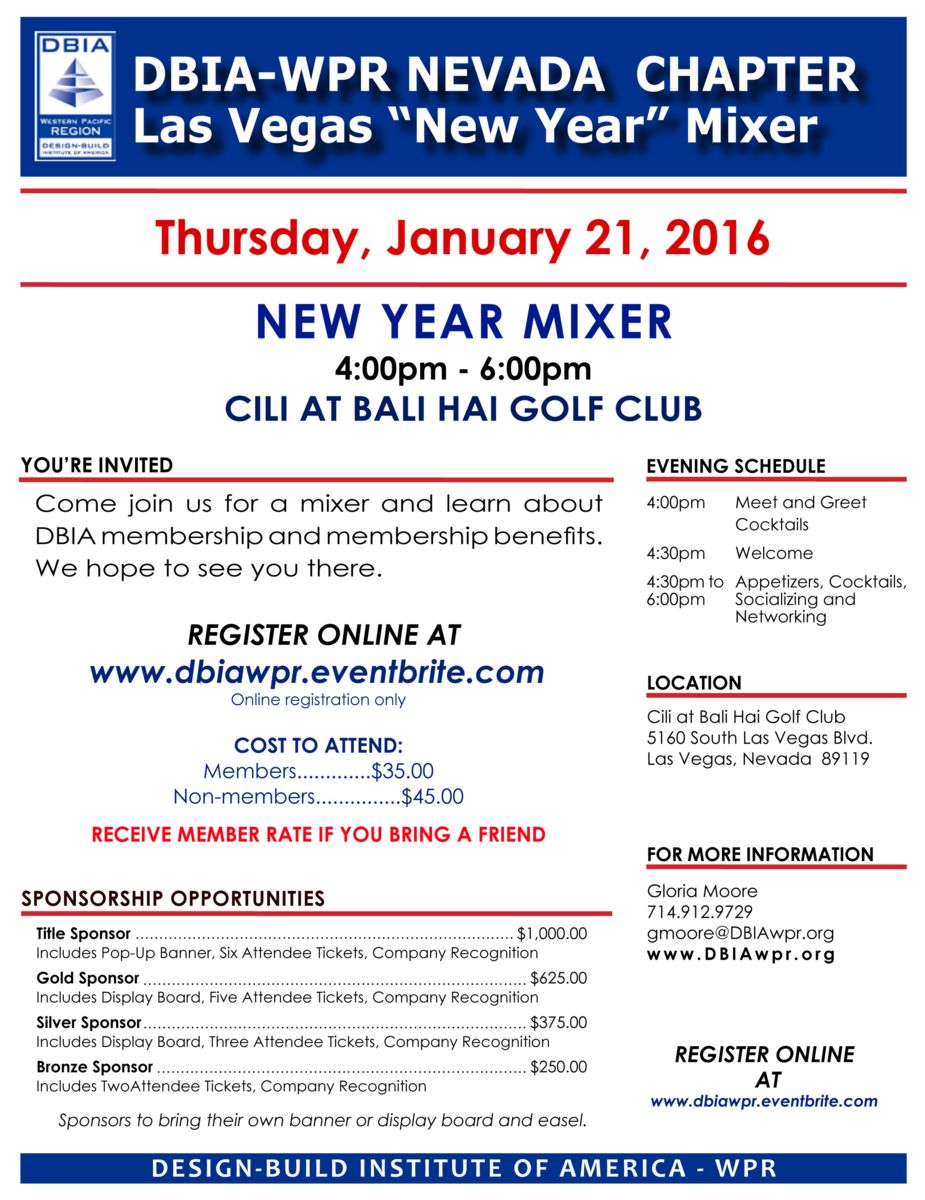 Description: DBIA-WPR NEVADA CHAPTER Las Vegas "New Year" Mixer.