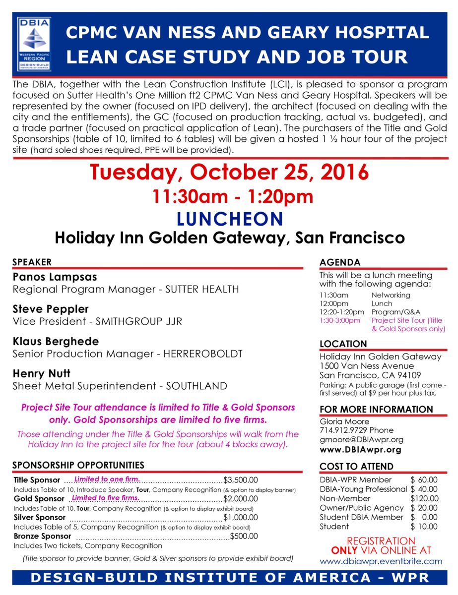 Description: Bay Area Chapter Luncheon Program: "CPMC VAN NESS AND GEARY HOSPITAL LEAN CASE STUDY AND JOB TOUR".