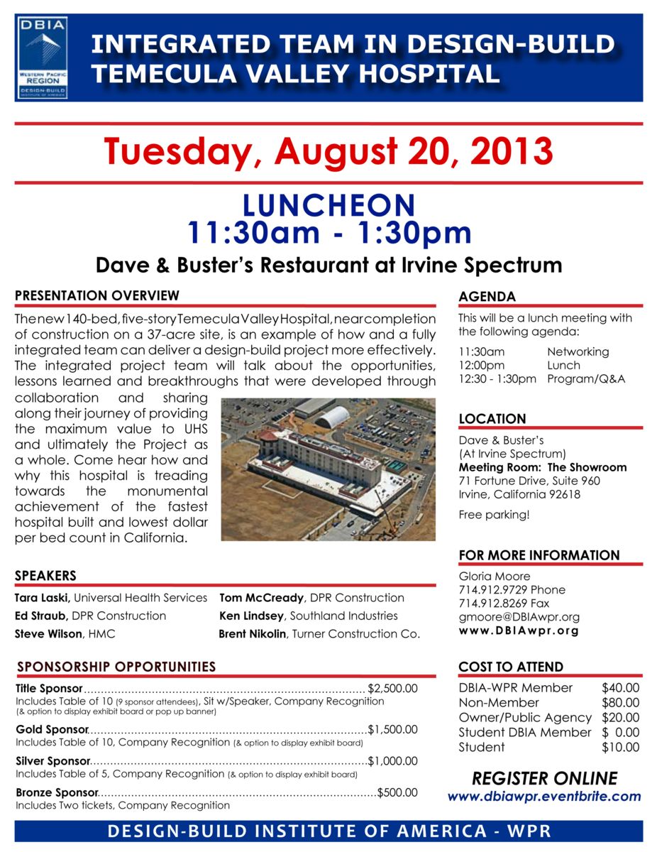 Description: OC/LA Luncheon Program, "Intergrated Team in Design-Build - Temecula Valley Hospital."