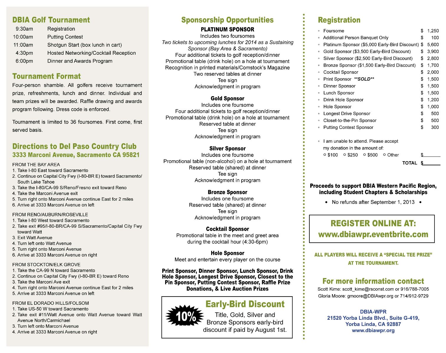 Description: Join us for golf at Del Paso Country Club on October 21, 2013. This will be the first DBIA-WPR Sacramento Golf Tournament.