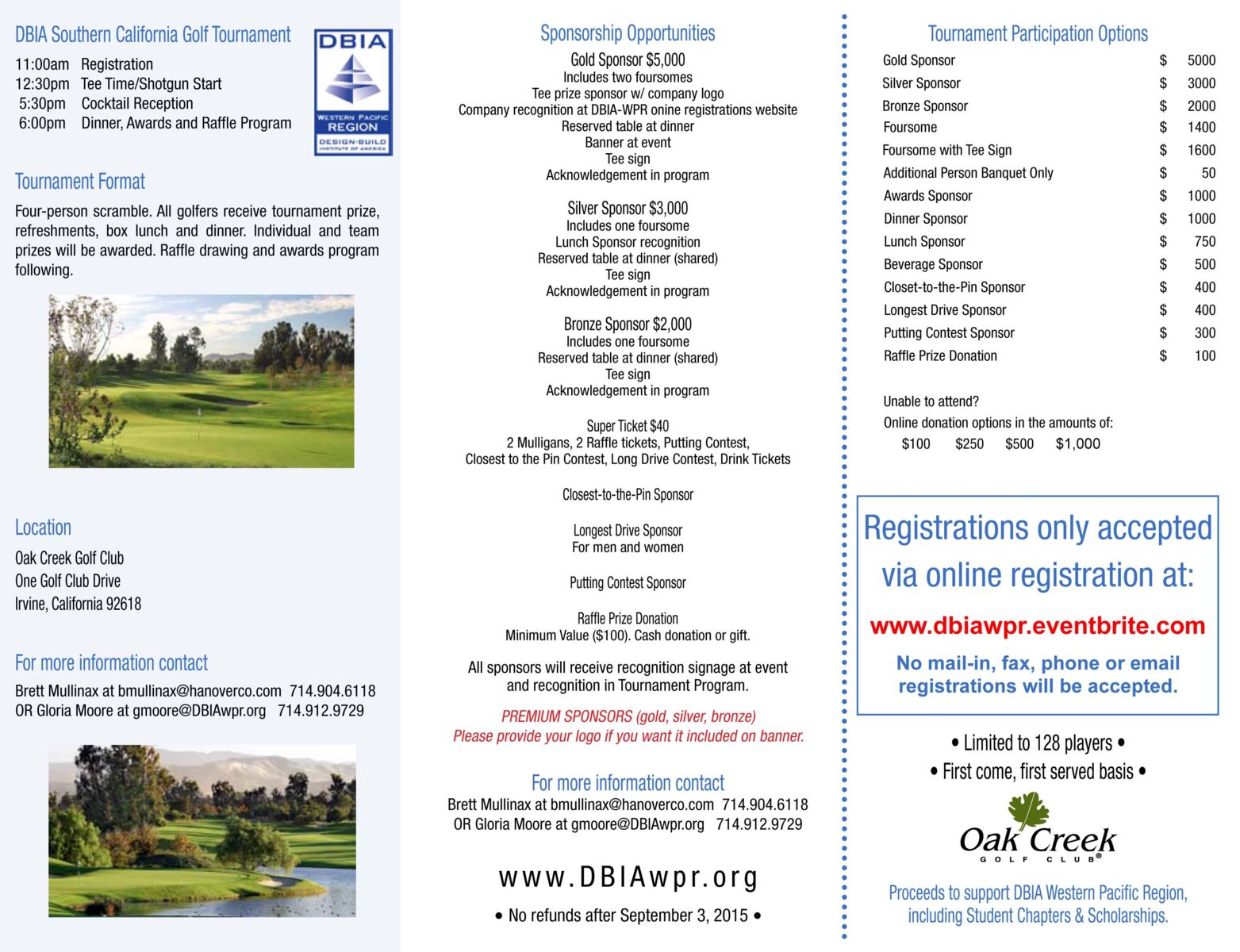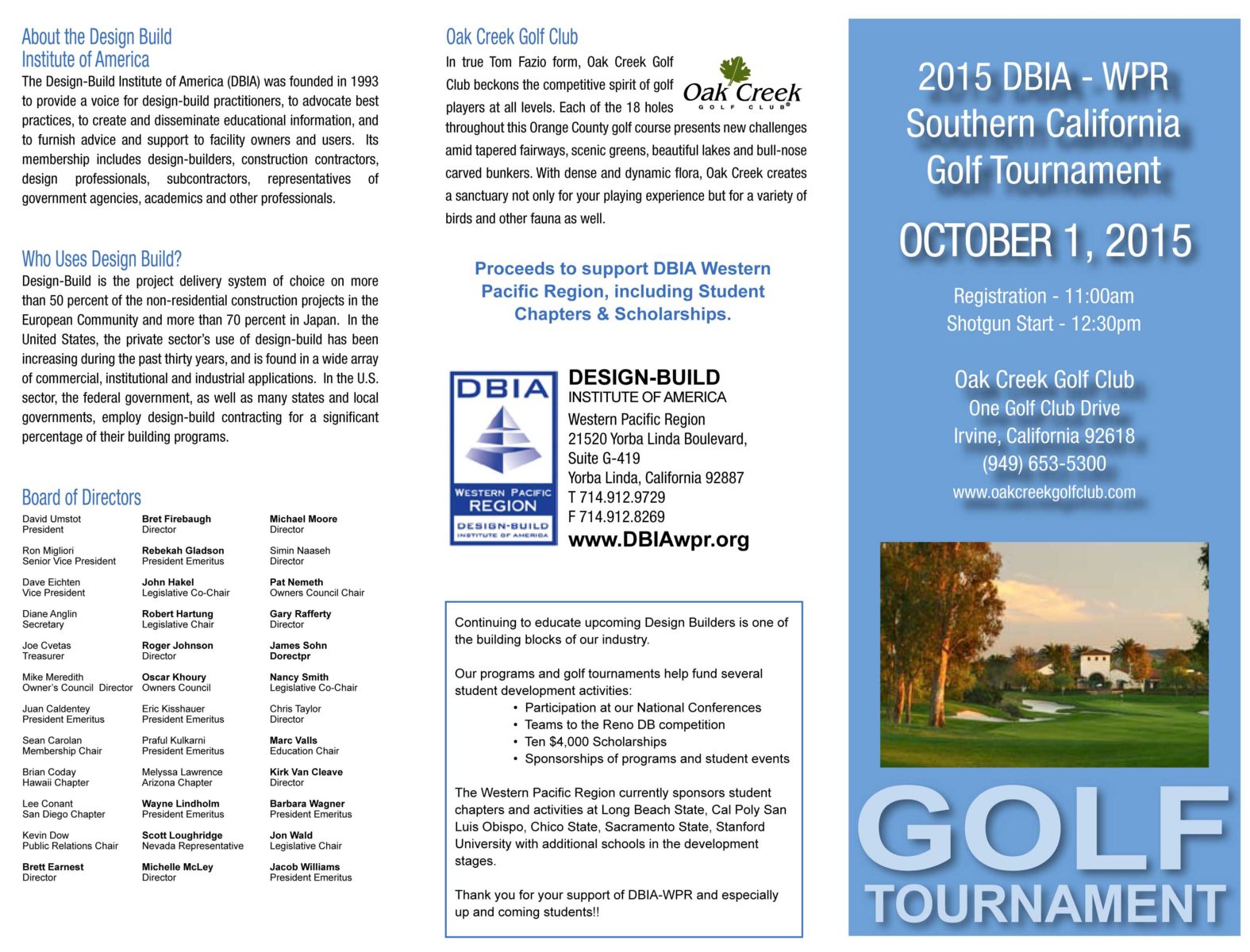 Description: DBIA-WPR So Cal Golf Tournament: Four person scramble. Individual and team prizes will be awarded.